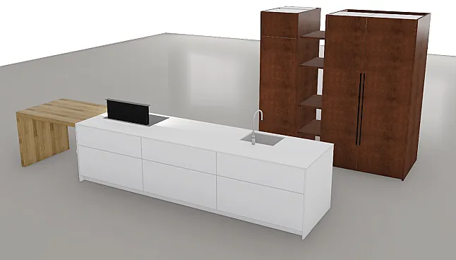 - Inselblock Länge 3,60 m, Tiefe 1,00 m (weiß matt, Antifingerprint)