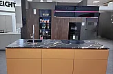 Leicht Minera 151 camata / Classic FS RAL-Design 0606040 Hochschrankzeile und große Kochinsel mit Granit-APL
