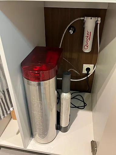 Großer Wasserspeicher für Kochend-Heißes-Wasser und kaltes sprudelndes Wasser.