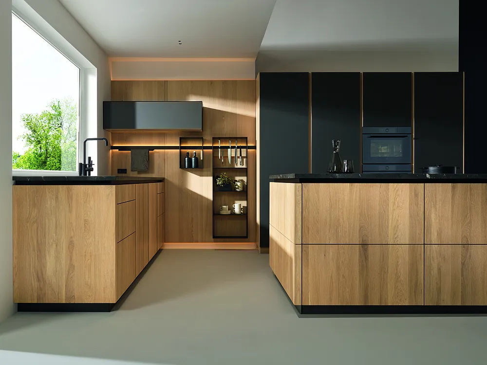 Grifflose Massivholzküche in schlichtem, modernen Design